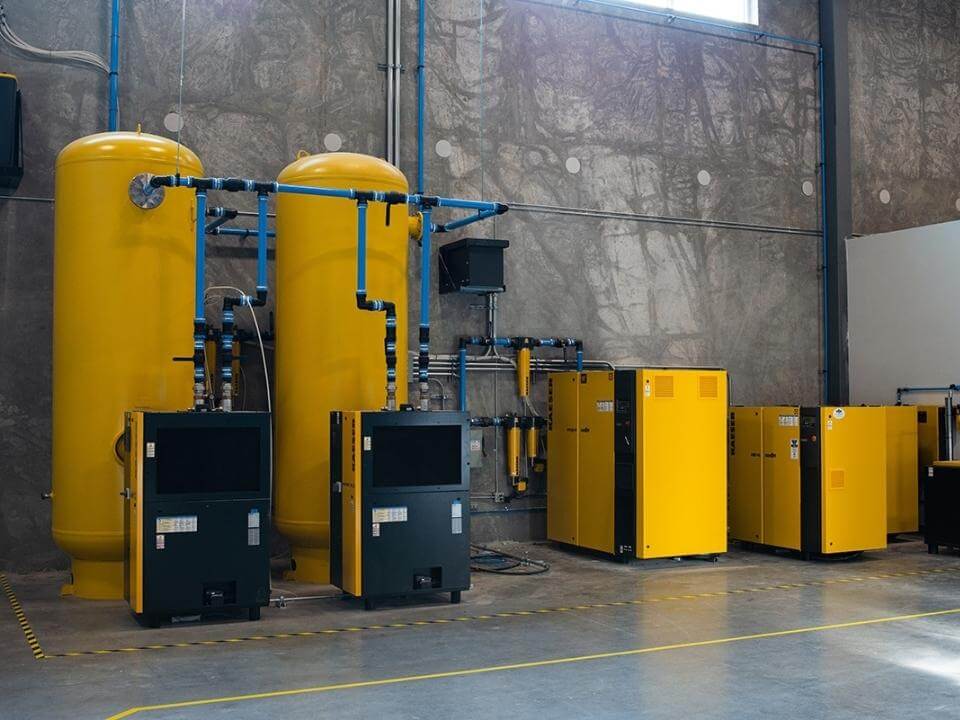 Basınçlı hava tesisatı genellikle aşağıdaki bileşenlerden oluşur: